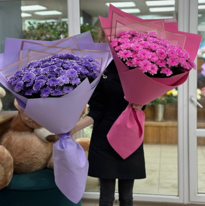 Большой букет из кустовой хризантемы в объемной упаковке. Цвет на выбор. Букет желательно заказывать минимум за 5 часов до доставки.